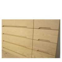 引出の前板は全て、無垢材の通し木で加工しており、二列に分かれる引出も木目は揃うように仕上げています。